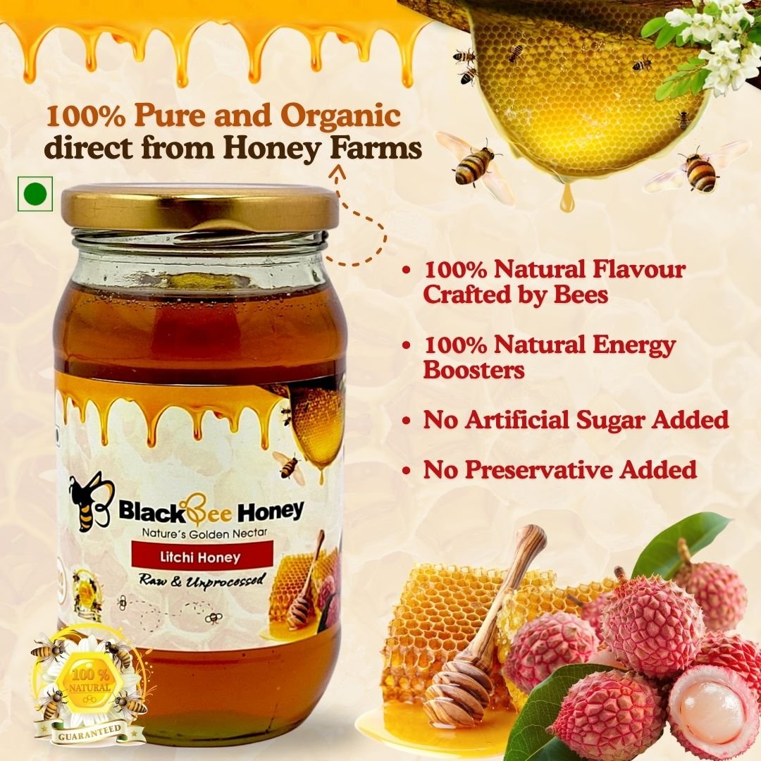 ₹250.00 – ₹500.00Price range: ₹250.00 through ₹500.00 Pack Size Choose an optionSingle (500g)Pack of 2 (500g)Single (500g)Pack of 2 (500g)Clear BlackBee Natural Litchi Honey quantity Add to cart SKU: N/A Category: Natural Honey Additional information Additional information Weight N/A Dimensions N/A Pack Size Single (500g), Pack of 2 (500g) Related products BlackBee Natural Sarso (Mustard) Honey ₹250.00 – ₹500.00Price range: ₹250.00 through ₹500.00 Select options This product has multiple variants. The options may be chosen on the product page BlackBee Natural Kashmiri Saffron Honey ₹1,000.00 – ₹2,000.00Price range: ₹1,000.00 through ₹2,000.00 Select options This product has multiple variants. The options may be chosen on the product page BlackBee Natural Dhaniya (Coriander) Honey ₹250.00 – ₹500.00Price range: ₹250.00 through ₹500.00 Select options This product has multiple variants. The options may be chosen on the product page BlackBee Natural Ajwain (Carom Seed) Honey ₹250.00 – ₹500.00Price range: ₹250.00 through ₹500.00 Select options This product has multiple variants. The options may be chosen on the product page