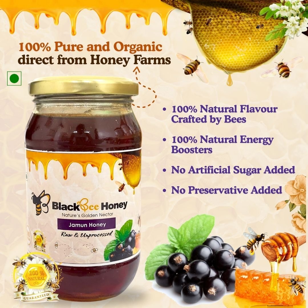 ₹250.00 – ₹500.00Price range: ₹250.00 through ₹500.00 Pack Size Choose an optionSingle (500g)Pack of 2 (500g)Single (500g)Pack of 2 (500g)Clear BlackBee Organic Jamun (Indian Blackberry) Honey quantity Add to cart SKU: N/A Category: Organic Honey Additional information Additional information Weight N/A Dimensions N/A Pack Size Single (500g), Pack of 2 (500g) Related products BlackBee Organic Bora (Wild Berry) Honey ₹250.00 – ₹500.00Price range: ₹250.00 through ₹500.00 Select options This product has multiple variants. The options may be chosen on the product page BlackBee Organic Acacia Honey ₹250.00 – ₹500.00Price range: ₹250.00 through ₹500.00 Select options This product has multiple variants. The options may be chosen on the product page BlackBee Organic Indian Rosewood Honey ₹250.00 – ₹500.00Price range: ₹250.00 through ₹500.00 Select options This product has multiple variants. The options may be chosen on the product page BlackBee Organic Wild Flower Honey ₹250.00 – ₹500.00Price range: ₹250.00 through ₹500.00 Select options This product has multiple variants. The options may be chosen on the product page