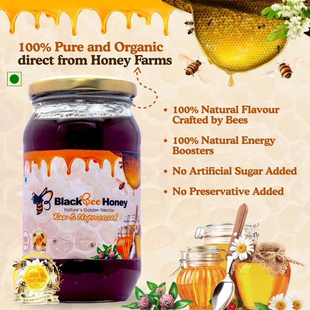 ₹250.00 – ₹500.00Price range: ₹250.00 through ₹500.00 Pack Size Choose an optionSingle (250g)Pack of 2 (500g)Single (250g)Pack of 2 (500g)Clear BlackBee Organic Raw Honey quantity Add to cart SKU: N/A Category: Raw Honey Additional information Additional information Weight 500.0 kg Dimensions 15 × 10 × 10 cm Pack Size Single (250g), Pack of 2 (500g)